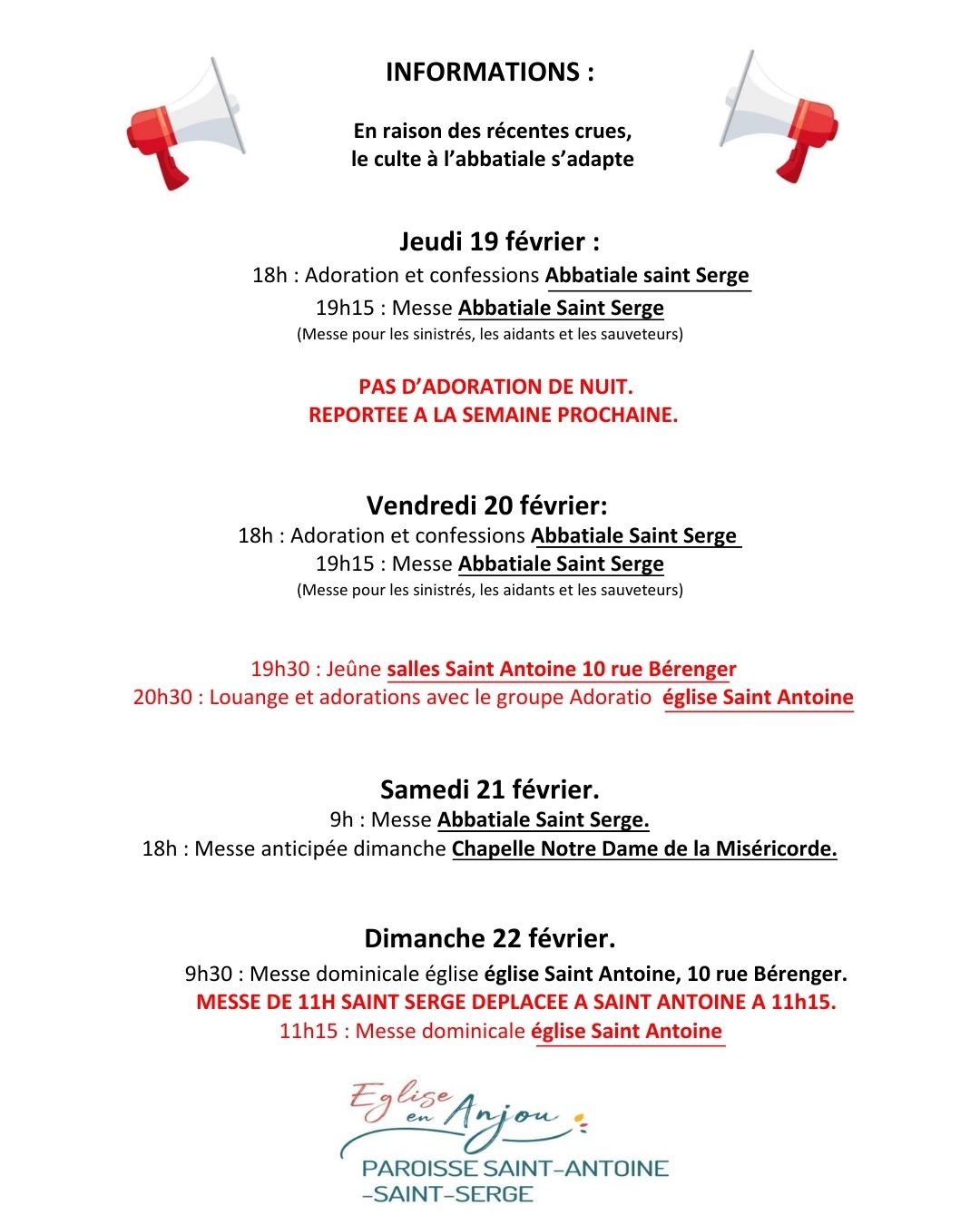 Accueil > Actualités > Plusieurs modifications du lieu du culte